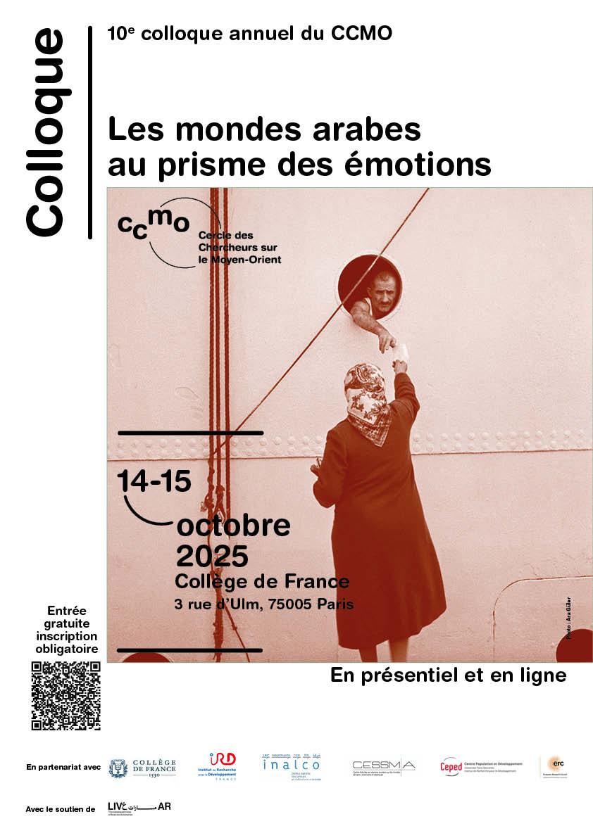 The LIVE-AR ERC project is collaborating with the Cercle des Chercheurs sur le Moyen-Orient (CCMO) to organise the 10th CCMO colloquium, titled ‘The Arab Worlds Through the Lens of Emotions’, which will take place on 14 and 15 October 2025 at the Collège de France in Paris, France.